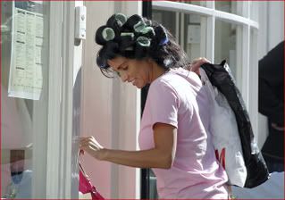 SHOPPED WITH HER HAIR IN ROLLERS IN